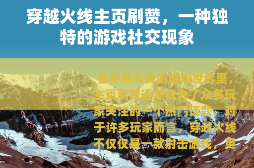 在穿越火线的游戏世界里,主页刷赞逐渐成为了众多玩家关注的一个热门话题,对于许多玩家而言,穿越火线不仅仅是一款射击游戏,更是一个展示自我、结交朋友的社交平台,而主页的点赞数量,在一定程度上成为了衡量玩家人气和影响力的一个重要指标。