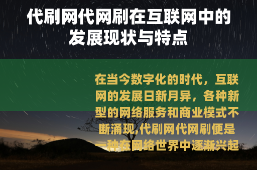 在当今数字化的时代,互联网的发展日新月异,各种新型的网络服务和商业模式不断涌现,代刷网代网刷便是一种在网络世界中逐渐兴起的现象。