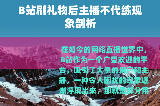 在如今的网络直播世界中,B站作为一个广受欢迎的平台,吸引了大量的用户和主播,一种令人困扰的现象逐渐浮现出来,那就是部分用户在给主播刷完礼物后,遭遇主播不代练的情况。