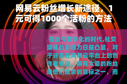 在当今数字化的时代,社交媒体的影响力日益凸显,对于许多在网易云平台上的创作者来说,拥有大量的粉丝是他们追求的目标之一,而如今,市场上出现了一种声称可以让网易云用户以1元获得1000个活粉的方式,这无疑为众多渴望粉丝增长的人带来了新的希望和可能性。