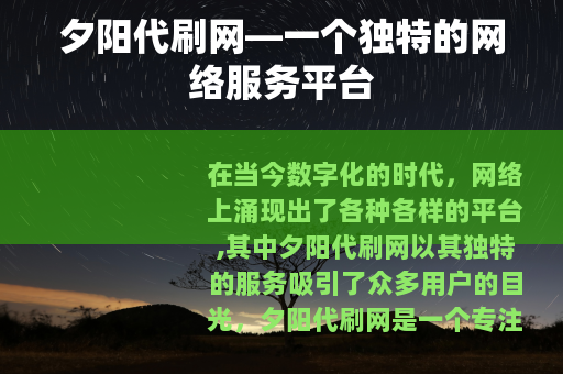 在当今数字化的时代,网络上涌现出了各种各样的平台,其中夕阳代刷网以其独特的服务吸引了众多用户的目光。