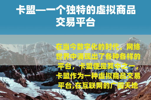 在当今数字化的时代,网络世界中涌现出了各种各样的平台,卡盟便是其中之一,卡盟作为一种虚拟商品交易平台,在互联网的广阔天地里占据着独特的一席之地。