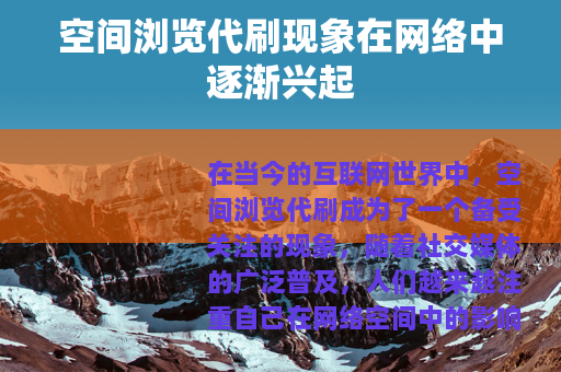在当今的互联网世界中,空间浏览代刷成为了一个备受关注的现象,随着社交媒体的广泛普及,人们越来越注重自己在网络空间中的影响力和关注度,而空间浏览量往往被视为衡量这种影响力的一个重要指标。