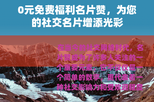 在当今的社交网络时代,名片赞成为了许多人关注的一个重要元素,它不仅仅是一个简单的数字,更代表着一种社交影响力和受欢迎程度,而0元免费福利名片赞的出现,无疑为广大用户带来了意想不到的惊喜和便利。