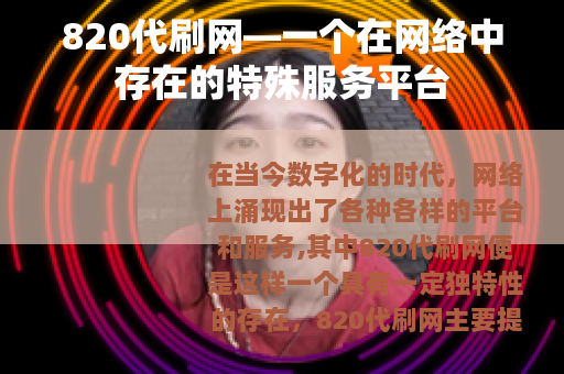 在当今数字化的时代,网络上涌现出了各种各样的平台和服务,其中820代刷网便是这样一个具有一定独特性的存在。