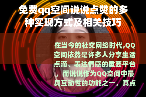 在当今的社交网络时代,QQ空间依然是许多人分享生活点滴、表达情感的重要平台,而说说作为QQ空间中最具互动性的功能之一,其点赞数量往往成为了衡量一条说说受欢迎程度的重要指标,对于很多用户来说,能够获得大量的免费QQ空间说说点赞是一件令人开心且能增加自身社交影响力的事情,接下来就为大家介绍一些关于免费QQ空间说说点赞的方法和技巧。