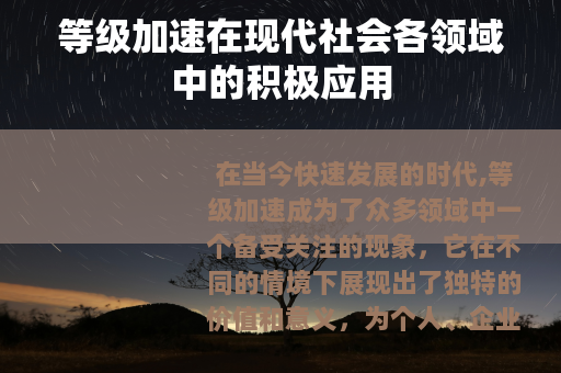 等级加速在众多领域的积极作用表明,它是推动社会发展和进步的重要力量,无论是个人还是组织,都应积极适应等级加速的趋势,不断努力提升自己的等级,以更好地应对时代的挑战,抓住发展的机遇,实现自身的可持续发展,为社会创造更多的价值,在这个充满机遇和挑战的时代,等级加速将继续在各个领域发挥其独特的作用,引领我们走向更加繁荣和美好的未来。