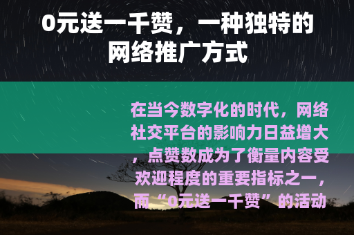 在当今数字化的时代,网络社交平台的影响力日益增大,点赞数成为了衡量内容受欢迎程度的重要指标之一,而“0元送一千赞”的活动也随之应运而生,为许多人提供了一个提升自己网络热度的机会。
