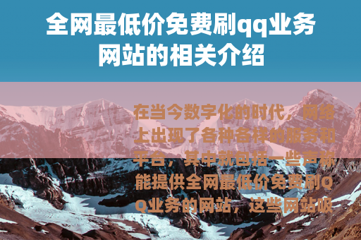 在当今数字化的时代,网络上出现了各种各样的服务和平台,其中就包括一些声称能提供全网最低价免费刷QQ业务的网站,这些网站吸引了众多QQ用户的关注,他们希望能够以较低的成本甚至免费的方式来获取更多的QQ业务服务,从而提升自己在QQ社交平台上的体验。