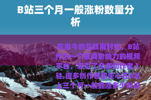 在当今的互联网时代,B站作为一个极具影响力的视频平台,吸引了众多创作者入驻,很多创作者都关心在B站上三个月一般能涨多少粉这个问题。