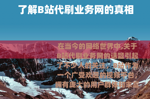 在当今的网络世界中,关于B站代刷业务网的话题引起了不少人的关注,B站作为一个广受欢迎的视频平台,拥有庞大的用户群体和丰富的内容生态,一些所谓的B站代刷业务网也悄然出现。