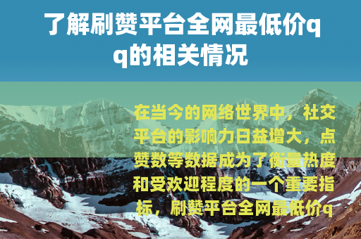 在当今的网络世界中,社交平台的影响力日益增大,点赞数等数据成为了衡量热度和受欢迎程度的一个重要指标,刷赞平台全网最低价qq这样的服务便应运而生,吸引了众多人的关注。