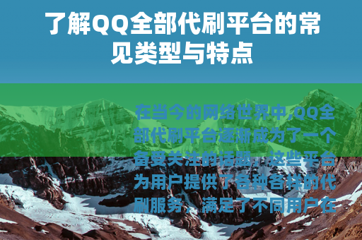 在当今的网络世界中,QQ全部代刷平台逐渐成为了一个备受关注的话题,这些平台为用户提供了各种各样的代刷服务,满足了不同用户在QQ相关领域的需求。