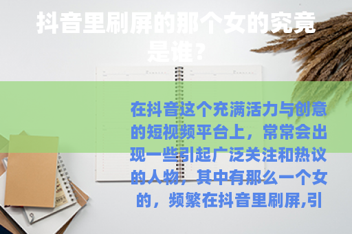 在抖音这个充满活力与创意的短视频平台上,常常会出现一些引起广泛关注和热议的人物,其中有那么一个女的,频繁在抖音里刷屏,引发了众多用户的好奇与讨论。