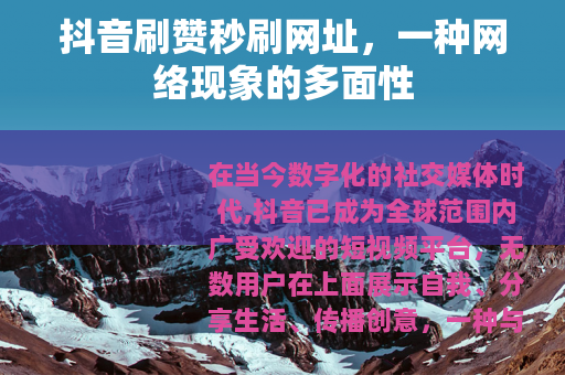 在当今数字化的社交媒体时代,抖音已成为全球范围内广受欢迎的短视频平台,无数用户在上面展示自我、分享生活、传播创意,一种与之相关的现象——抖音刷赞秒刷网址也逐渐进入了大众的视野。