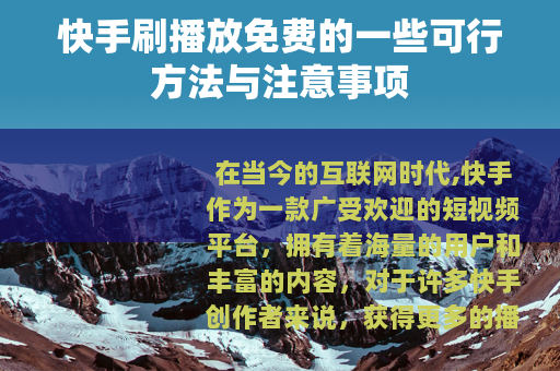 在当今的互联网时代,快手作为一款广受欢迎的短视频平台,拥有着海量的用户和丰富的内容,对于许多快手创作者来说,获得更多的播放量是他们追求的目标之一,而快手刷播放免费的话题也因此备受关注。