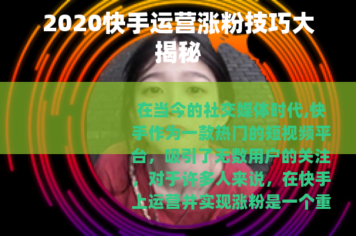 在当今的社交媒体时代,快手作为一款热门的短视频平台,吸引了无数用户的关注,对于许多人来说,在快手上运营并实现涨粉是一个重要的目标,在2020年,有哪些有效的快手运营涨粉技巧呢? 创作是关键,要制作出高质量、有吸引力的视频内容,这意味着要关注当下的热点话题,了解用户的兴趣点所在,如果你发现某个搞笑段子在网络上很火,那么可以将其改编成适合快手风格的短视频,以幽默风趣的方式呈现给观众,从而吸引他们的关注和点赞,视频的画面质量也要有保证,清晰、稳定的画面会给用户带来更好的观看体验,增加他们停留的时间。