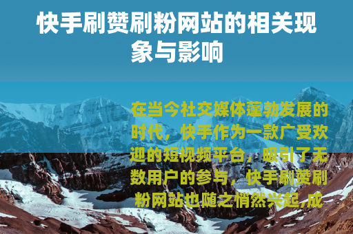 在当今社交媒体蓬勃发展的时代,快手作为一款广受欢迎的短视频平台,吸引了无数用户的参与,快手刷赞刷粉网站也随之悄然兴起,成为了一个备受关注的现象。