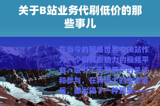 在当今的网络世界中,B站作为一个极具影响力的视频平台,吸引了无数用户的关注和参与,在其庞大的生态背后,却出现了一种现象——B站业务代刷低价。