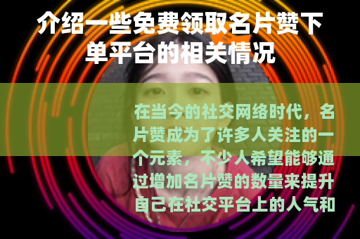 在当今的社交网络时代,名片赞成为了许多人关注的一个元素,不少人希望能够通过增加名片赞的数量来提升自己在社交平台上的人气和影响力,免费领取名片赞下单平台也应运而生,受到了众多用户的青睐。