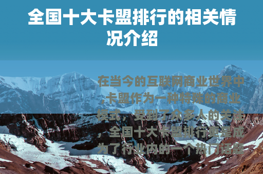 在当今的互联网商业世界中,卡盟作为一种特殊的商业模式,受到了众多人的关注,全国十大卡盟排行更是成为了行业内的一个热门话题,许多人都想了解哪些卡盟在众多同行中脱颖而出,位列前十。