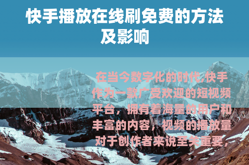 在当今数字化的时代,快手作为一款广受欢迎的短视频平台,拥有着海量的用户和丰富的内容,视频的播放量对于创作者来说至关重要,它不仅代表着作品的受欢迎程度,还在一定程度上影响着创作者在平台上的发展和收益,不少人对快手播放在线刷免费的话题产生了浓厚的兴趣。