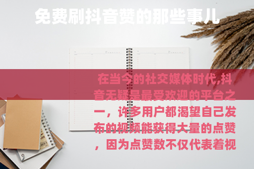 在当今的社交媒体时代,抖音无疑是最受欢迎的平台之一,许多用户都渴望自己发布的视频能获得大量的点赞,因为点赞数不仅代表着视频的受欢迎程度,还能在一定程度上增加账号的曝光度和影响力。“免费刷抖音赞”这样的话题便应运而生,吸引了众多用户的关注。
