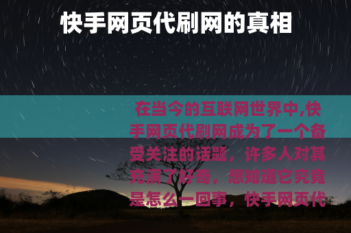 在当今的互联网世界中,快手网页代刷网成为了一个备受关注的话题,许多人对其充满了好奇,想知道它究竟是怎么一回事。