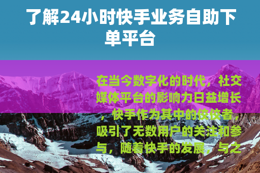 在当今数字化的时代,社交媒体平台的影响力日益增长,快手作为其中的佼佼者,吸引了无数用户的关注和参与,随着快手的发展,与之相关的各类业务需求也不断涌现,24小时快手业务自助下单平台便应运而生。