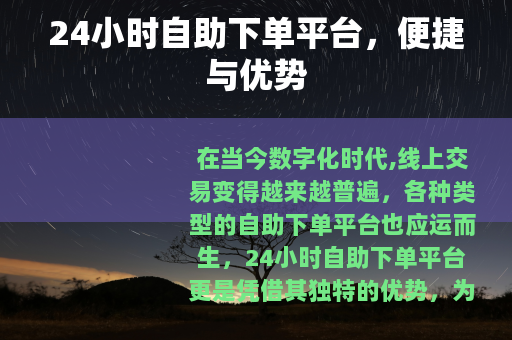 在当今数字化时代,线上交易变得越来越普遍,各种类型的自助下单平台也应运而生,24小时自助下单平台更是凭借其独特的优势,为用户提供了极大的便利。