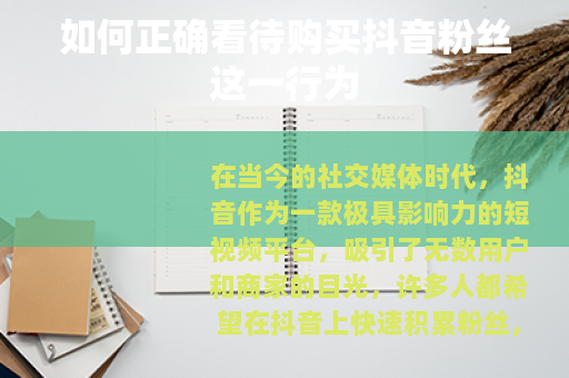 在当今的社交媒体时代,抖音作为一款极具影响力的短视频平台,吸引了无数用户和商家的目光,许多人都希望在抖音上快速积累粉丝,从而提升自己的影响力和商业价值,这也使得“怎么买抖音粉丝”成为了一个备受关注的话题。
