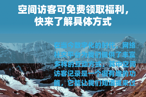 在当今数字化的时代,网络社交平台为我们提供了丰富多样的互动方式,其中空间访客记录是一个很有趣的功能,它能让我们知道谁来过自己的空间,关注着自己的动态,而如今,更有一个令人兴奋的消息传来,那就是空间访客可以免费领取各种福利啦。