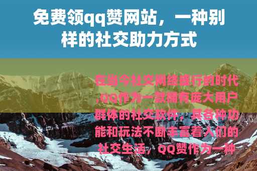 在当今社交网络盛行的时代,QQ作为一款拥有庞大用户群体的社交软件,其各种功能和玩法不断丰富着人们的社交生活,QQ赞作为一种表达喜爱和认可的方式,受到了众多用户的关注,而免费领qq赞网站也应运而生,为用户提供了一种获取更多赞的途径。