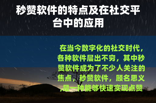 我们要以积极的态度看待秒赞软件的发展,充分利用其优势,同时也要不断探索和完善其使用方法,使其更好地服务于我们的社交生活和社会发展,让我们在享受秒赞软件带来便利的同时,也能够共同营造一个充满活力和正能量的社交网络空间。