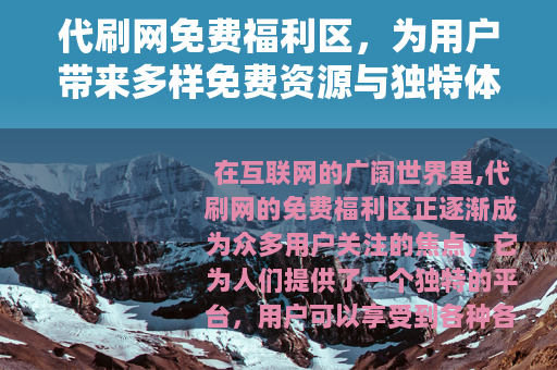 在互联网的广阔世界里,代刷网的免费福利区正逐渐成为众多用户关注的焦点,它为人们提供了一个独特的平台,用户可以享受到各种各样的免费福利,开启一段别样的网络之旅。