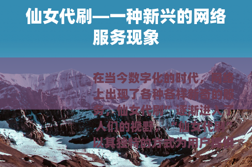 在当今数字化的时代,网络上出现了各种各样新奇的服务,仙女代刷”逐渐进入了人们的视野。“仙女代刷”以其独特的方式为用户提供了一系列的帮助,满足了不同人群在网络世界中的特定需求。