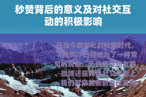 在当今数字化的社交时代,“秒赞”已经成为了一种常见的现象,无论是在朋友圈、微博还是其他社交平台上,我们常常能看到自己发布的内容在瞬间就获得了朋友们的点赞,这种被称为“秒赞”的行为,看似简单,却蕴含着丰富的意义,对社交互动产生了多方面的积极影响。