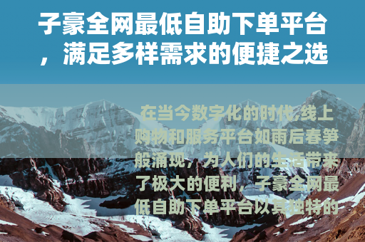 在当今数字化的时代,线上购物和服务平台如雨后春笋般涌现,为人们的生活带来了极大的便利,子豪全网最低自助下单平台以其独特的优势在众多平台中脱颖而出,成为了众多用户的热门选择。