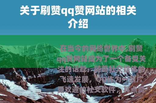 在当今的网络世界中,刷赞qq赞网站成为了一个备受关注的话题,随着社交媒体的飞速发展,QQ作为一款广受欢迎的社交软件,其点赞功能也成为了人们展示自己受欢迎程度和社交影响力的一种方式,而刷赞qq赞网站便应运而生,为用户提供了一种快速增加QQ赞数的途径。