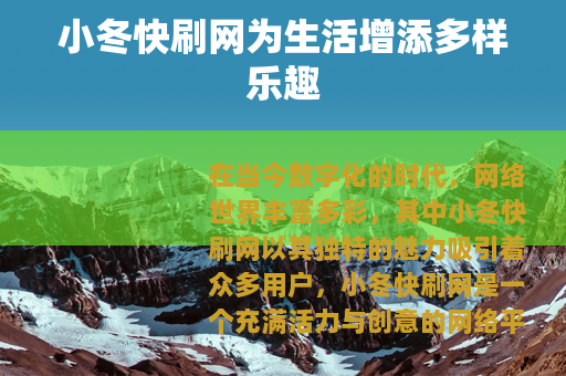 在当今数字化的时代,网络世界丰富多彩,其中小冬快刷网以其独特的魅力吸引着众多用户,小冬快刷网是一个充满活力与创意的网络平台,它为人们提供了一个全新的社交和娱乐空间。