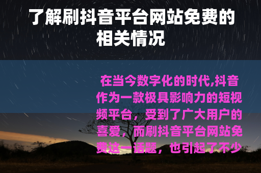 在当今数字化的时代,抖音作为一款极具影响力的短视频平台,受到了广大用户的喜爱,而刷抖音平台网站免费这一话题,也引起了不少人的关注。
