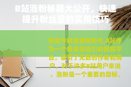在当今的互联网时代,B站作为一个极具影响力的视频平台,吸引了无数创作者和用户,对于许多B站用户来说,涨粉是一个重要的目标,它不仅能带来更多的关注和认可,还可能为创作者带来更多的机会和收益,在B站怎样涨粉快呢?以下是一些实用的方法和技巧。