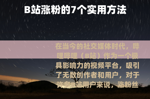 在当今的社交媒体时代,哔哩哔哩(B站)作为一个极具影响力的视频平台,吸引了无数创作者和用户,对于许多B站用户来说,涨粉丝是一个重要的目标,它不仅能带来更多的关注和认可,还可能为创作者带来更多的机会和收益,以下是在B站涨粉丝的7个方法。