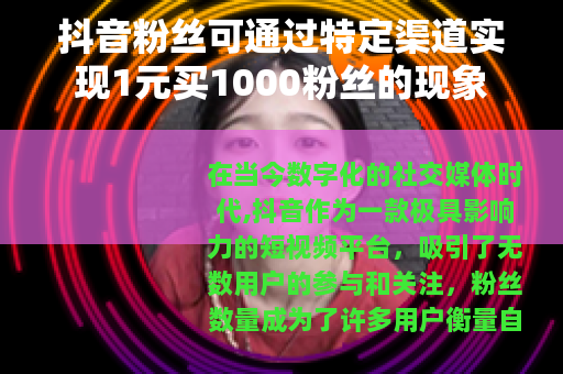 在这样的背景下,一种所谓“抖音粉丝买1元粉丝1000”的现象逐渐在一些网络角落中出现,对于许多渴望在抖音上快速积累粉丝、提升自己账号热度的人来说,这似乎是一个极具吸引力的选择。