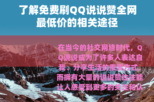 在当今的社交网络时代,QQ说说成为了许多人表达自我、分享生活的重要方式,而拥有大量的说说赞往往能让人感受到更多的关注和认可,免费刷QQ说说赞全网最低价的话题便引起了不少人的兴趣。