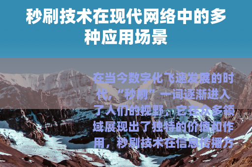 在当今数字化飞速发展的时代,“秒刷”一词逐渐进入了人们的视野,它在众多领域展现出了独特的价值和作用。