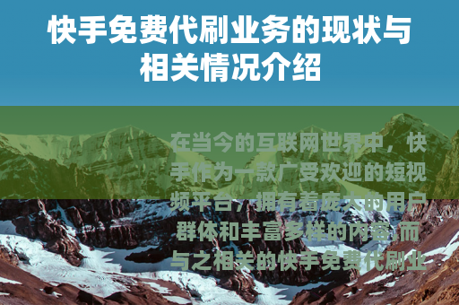 在当今的互联网世界中,快手作为一款广受欢迎的短视频平台,拥有着庞大的用户群体和丰富多样的内容,而与之相关的快手免费代刷业务也逐渐进入了人们的视野。