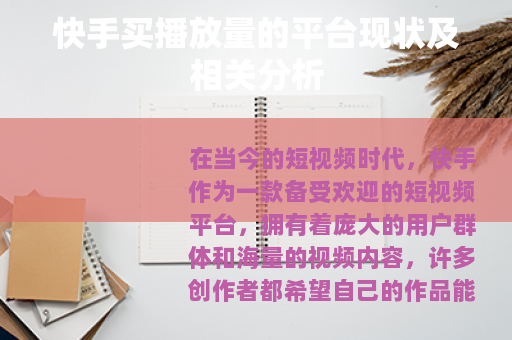 在当今的短视频时代,快手作为一款备受欢迎的短视频平台,拥有着庞大的用户群体和海量的视频内容,许多创作者都希望自己的作品能够获得更多的播放量,从而提高知名度和影响力,在这样的背景下,一些快手买播放量的平台应运而生。