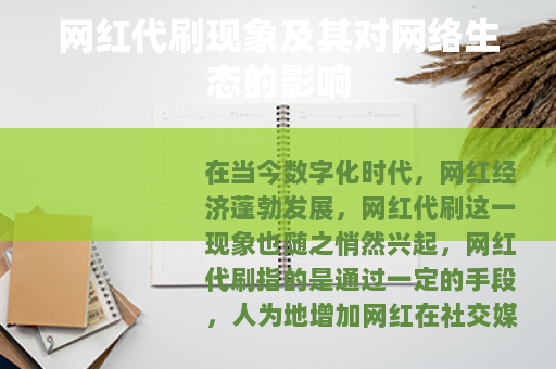 网红代刷现象是网红经济发展过程中出现的一个问题,它对网络生态和网红经济的健康发展都带来了挑战,但只要我们各方共同努力,采取有效的措施加以应对,就一定能够克服这一问题,让网红经济在一个更加公平、健康、有序的环境中发展壮大,为社会经济的发展注入新的活力,为人们的生活带来更多的乐趣和价值,我们要积极引导网红代刷现象朝着积极的方向发展,使其成为推动网红经济发展的有益力量,而不是阻碍其发展的绊脚石,在未来的发展中,我们相信通过不断的努力和创新,网红经济将会迎来更加美好的明天,而网红代刷现象也将得到有效的治理和规范,不再成为影响网络生态的负面因素。