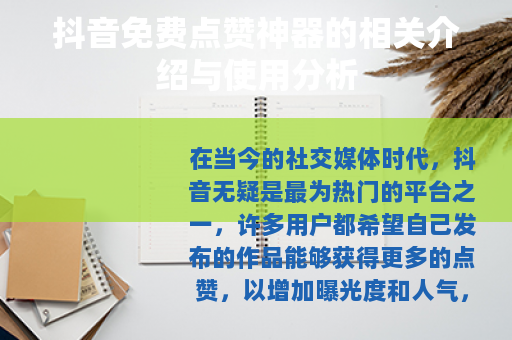 在当今的社交媒体时代,抖音无疑是最为热门的平台之一,许多用户都希望自己发布的作品能够获得更多的点赞,以增加曝光度和人气,而抖音免费点赞神器也在这样的背景下应运而生,吸引了众多用户的关注。